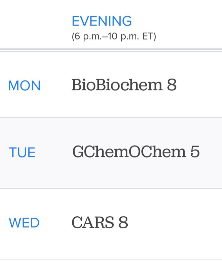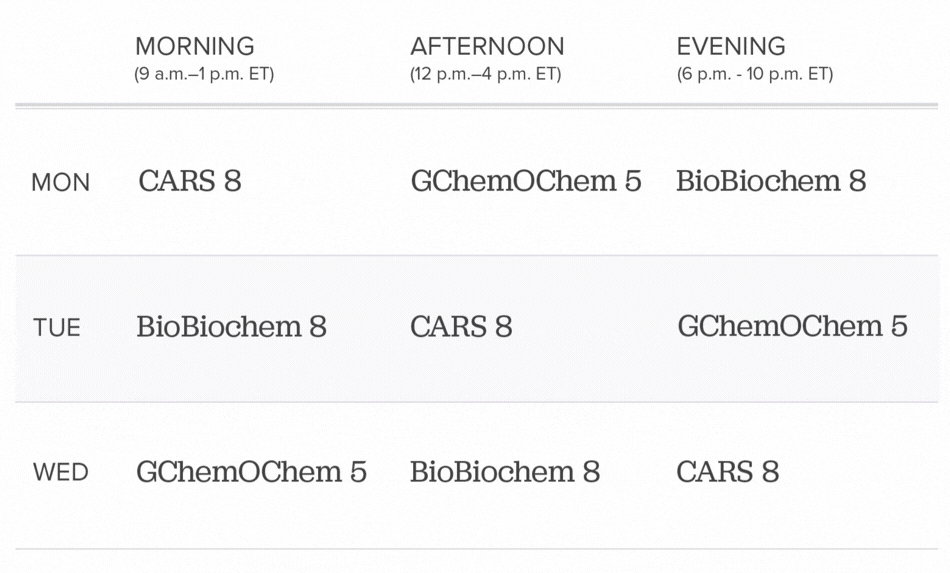"The structured schedule really helps me stay on track. It’s a great program for anyone looking for guidance and accountability while studying for the MCAT!"